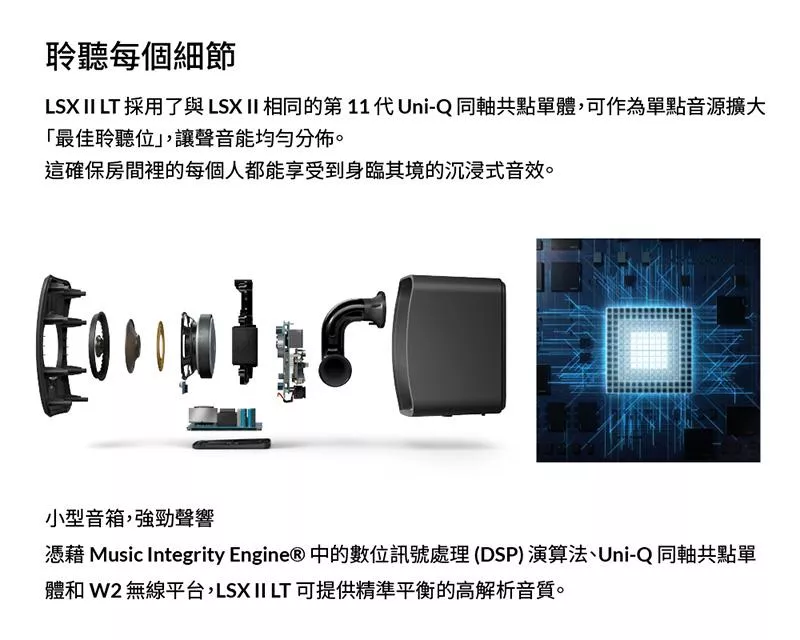 • 採用品牌獨家第 11 代 Uni-Q 同軸共點單體,精準原音重現 Music Integrity Engine 功能,音質更飽滿。